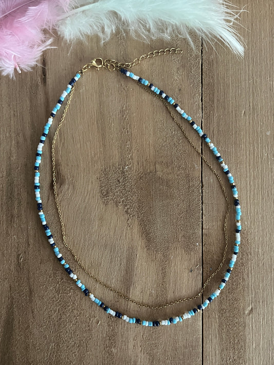 Cha | Collier double rang perles avec chaine en acier inoxydable